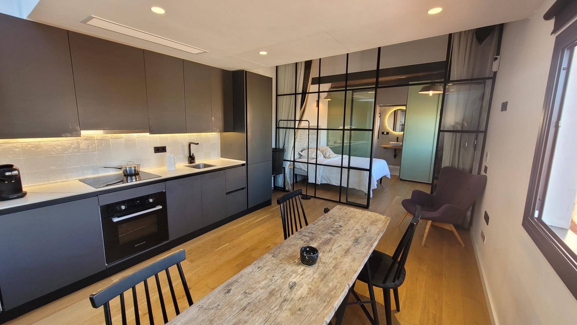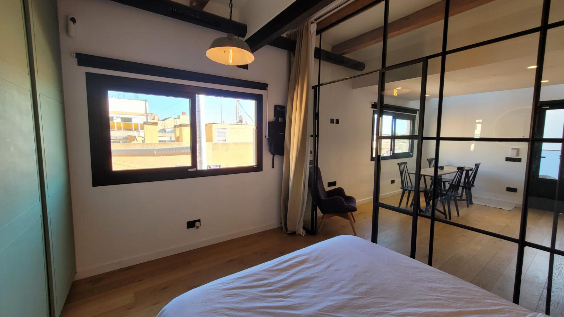 Fantástico ático de diseño en el centro de Barcelona, muy luminoso. Ideal parejas. Un solo ambiente, diferenciado con mampara de diseño que separa el salón de la zona de dormitorio con un gran armario empotrado. Gran terraza de 12 m con suelos de madera e iluminación indirecta. Cocina abierta completamente equipada con lavadora, lavavajillas y frigorífico integrados. Suelos de parqué de roble, cerramientos de aluminio con doble cristal. Baño completo con mampara y amplia ducha. Todos los servicios en la zona: Zona de shopping . Transporte público de diversas líneas de autobús, metro, RENFE, FGC, paradas de taxi, carril bici, comercio de proximidad, mercados de abastos Boqueria y Sant Antoni y supermercados. Conocida zona de restauración para tapeo y buena cocina. *SUJETO A DERECHO DE TANTEO Y RETRACTO DE LA GENERALITAT DE CATALUNYA.